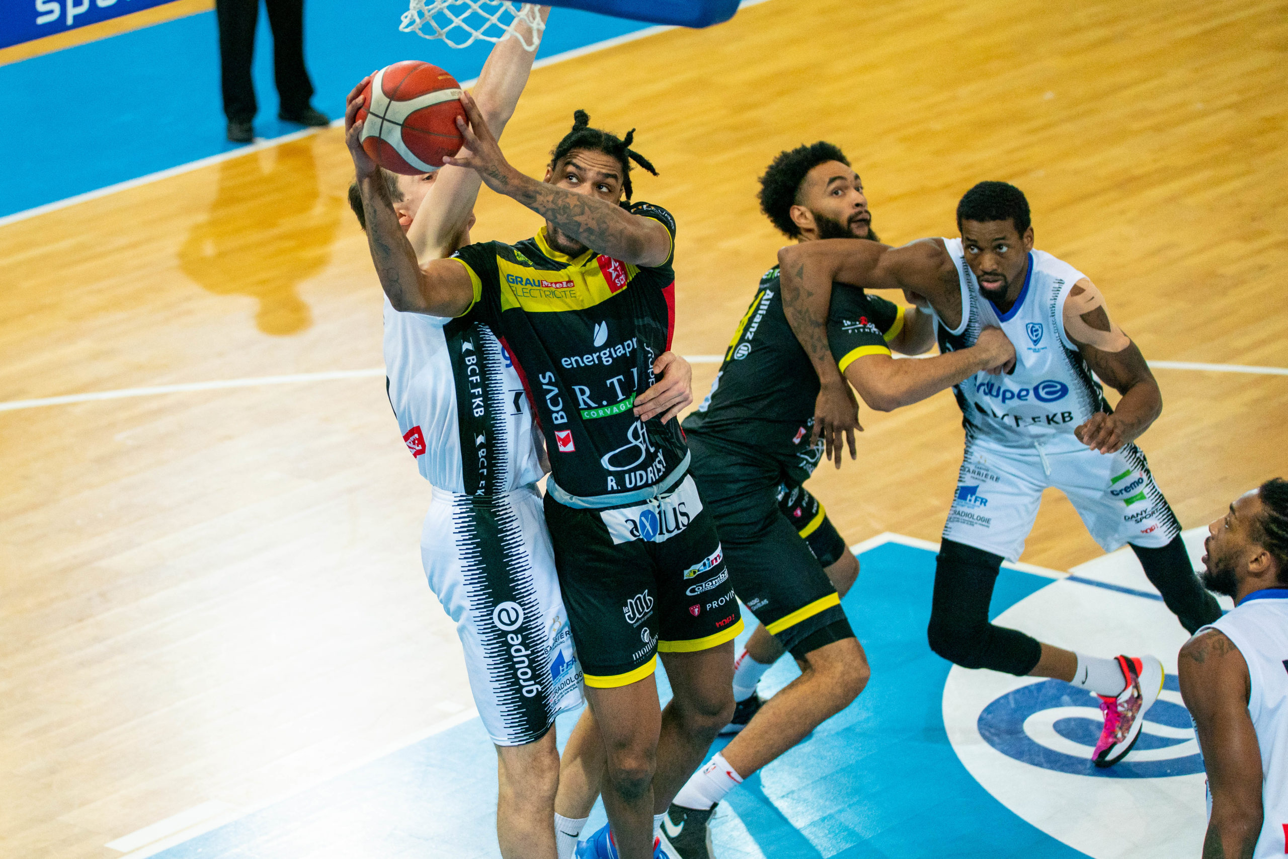 FRIBOURG OLYMPIC : Armstead (6), Barnette (22), Mbala (2), Cotture (6), Garrett (12), puis Zinn (7), Morris (12), Gravet (16), Hart (4), Martina (0), Maquiesse (0). Entraineur : Petar Aleksic