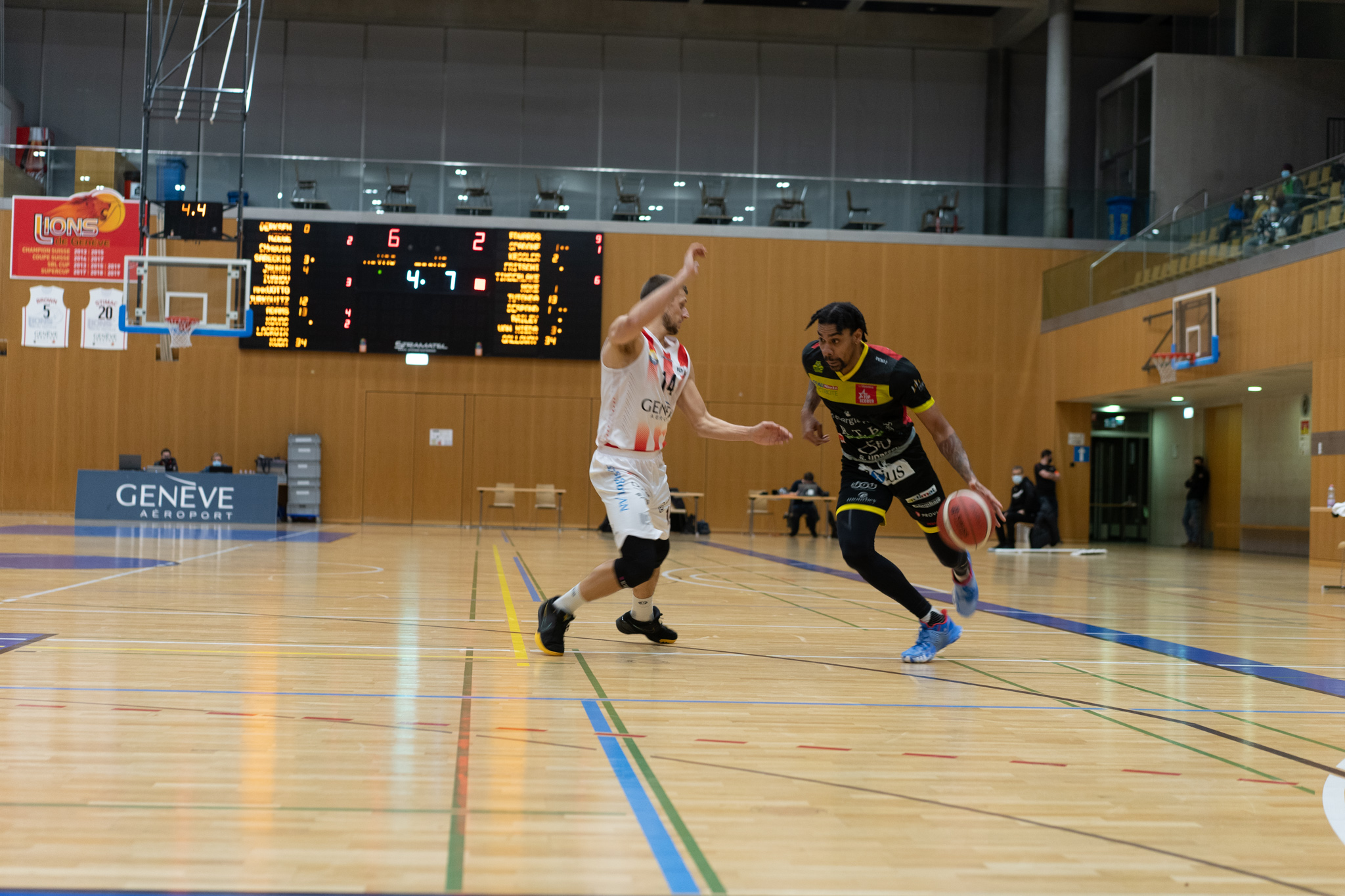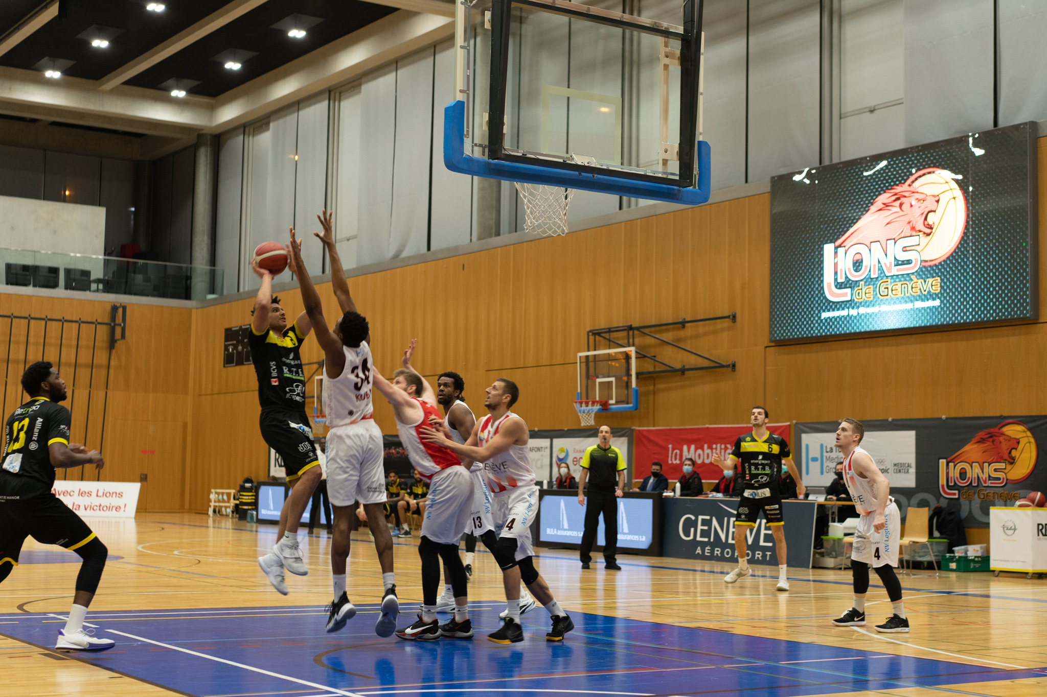 Lions de Genève : Sabeckis (4), Jurkovitz (3), Derksen (7), Nzege (4), Ivanov (7), puis Jaunin (3), Maruotto (11), Adams (8), Kovac (23), Kuba (4). Entraineur : Andrej Stimac